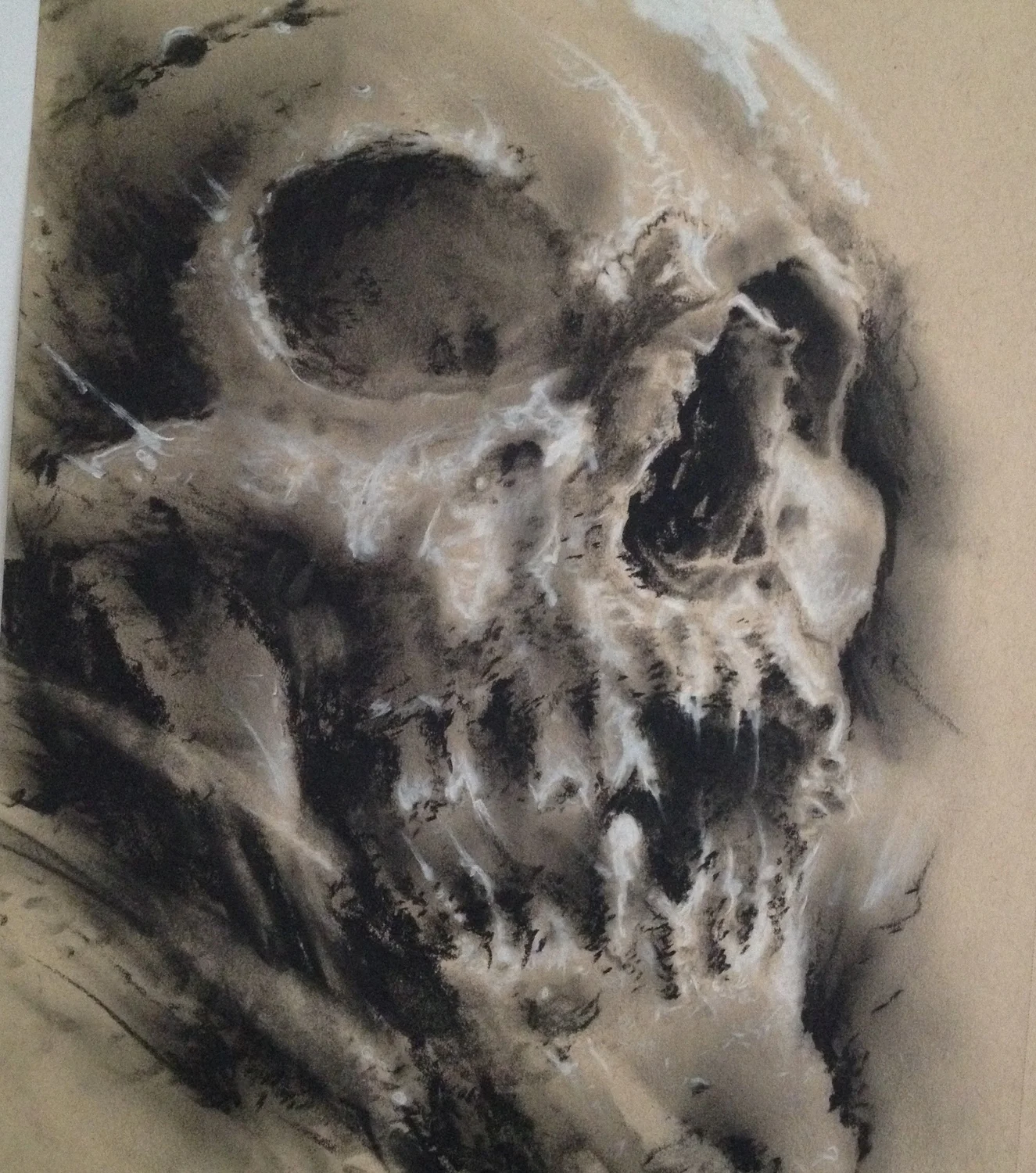 Some past studies in charcoal, watercolor, oils and pastels focusing on heavy texture and contrast.